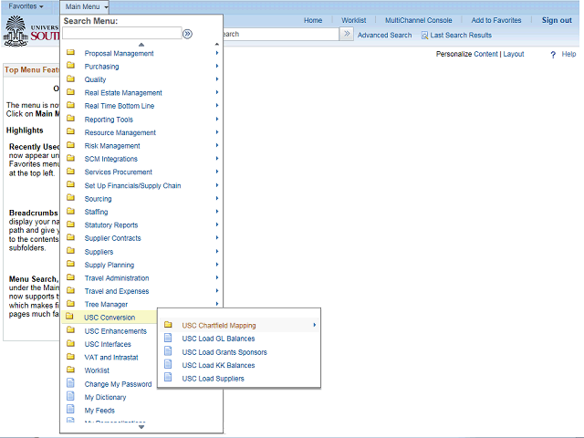 Click the USC ChartField Mapping menu.