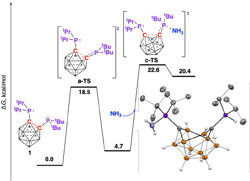 In this study, the N–H bonds of ammonia were activated at room temperature across two phosphine centers, forming P–NH₂ and P–H groups. Unlike many ammonia activation examples in literature, this system operates under ambient conditions and is tolerant of both air and water. Experimental and computational analyses revealed that the boron cluster electron-accepting properties enhance the electrophilicity of the phosphine groups, facilitating the initial coordination and bond cleavage of ammonia.