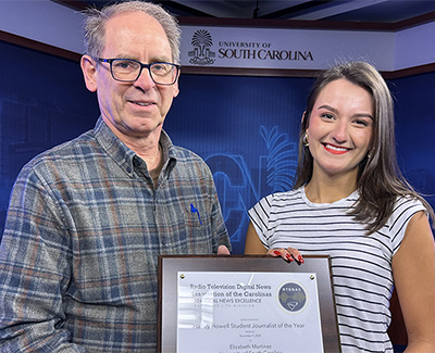 Elizabeth Martinez, who graduated in May 2024 and is now a multimedia content producer for Spectrum News in Greenville, South Carolina, was named the Haney Howell Student Journalist of the Year.