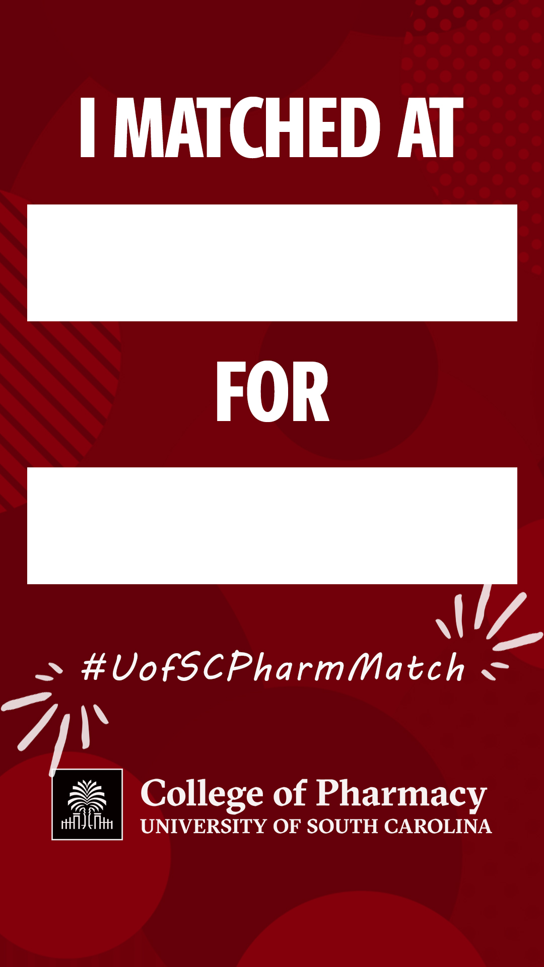 This key milestone in your pharmacy career deserves celebrating. We've compiled some resources to help you share the good news. Remember to include #RxMatchDay and #GamecockPharmacy in any social media posts.