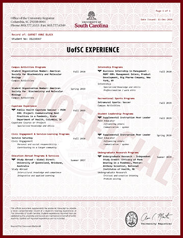 Each undergraduate student at USC has the opportunity to shape their academic experience, both in and out of the classroom. You can already track your degree progression on your academic transcript, and now the university is providing you with records of your educational experiences outside the classroom to help you plan and achieve your goals. These new education records are known as your My USC Experience.