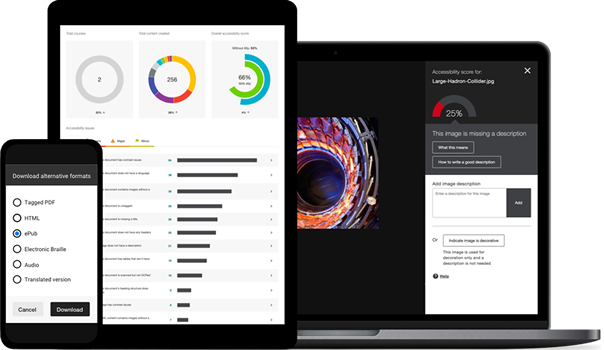 Blackboard Learn Ally helps build a more inclusive learning environment and improve the student experience by helping instructors take clear control of course content with usability, accessibility and quality in mind. Make course materials accessible to all students and continue to provide accommodations for specific students identified by Student Disability Resource Center (SDRC). Depending on the accommodation needed, you may be able to provide the accommodation using the Blackboard Learn Ally tool, which provides Alternative Formats (audio, Braille, ePub, HTML, etc) of your course materials. Instructor Feedback can also provide the instructor with guidance to meet accessibility standards.