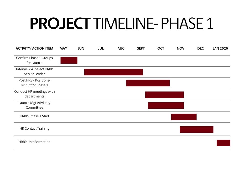Phase I (completed): The Design Team working group met every three weeks throughout Fall 2024 and designed a new HR model that will elevate HR across the USC system by creating consistency, enhancing strategic HR services, and creating clearer career paths for HR professionals at the system.