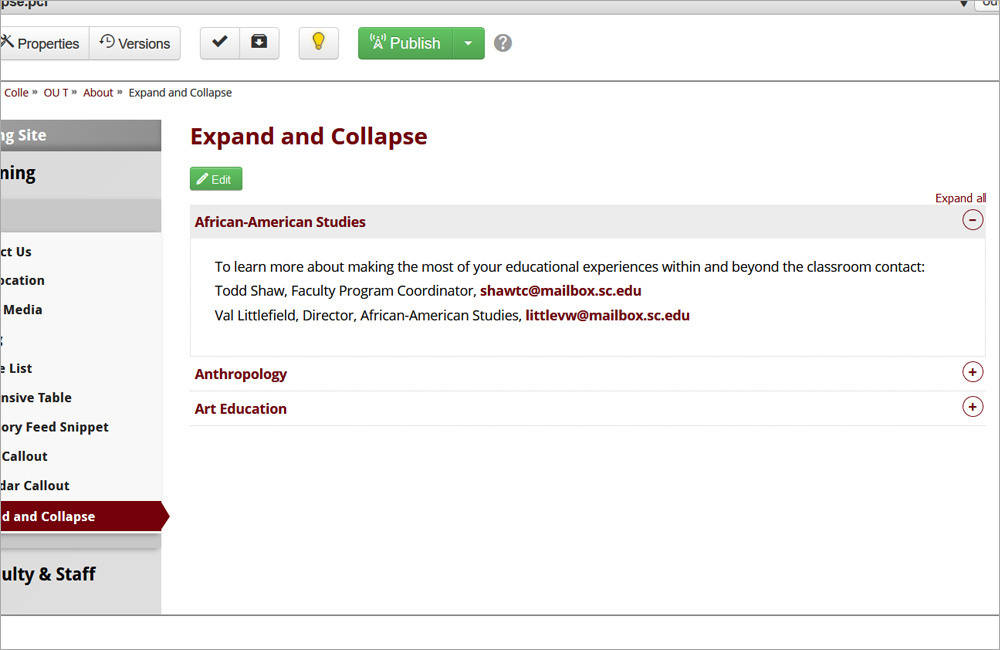 4. Save the changes and preview the expand and collapse.