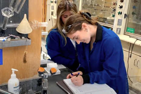 Undergraduate researchers Gigi Jones and Pilar Zamorano are learning how to grow crystals. In a lab at the University of South Carolina, a graduate student guides them through the steps to mix elements, add heat and cool it down just slowly enough to get crystals to form.
