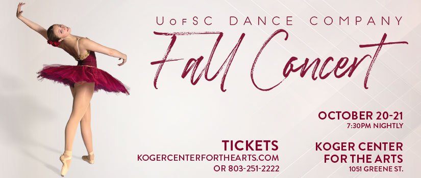 The University of South Carolina dance program will perform a dynamic repertory of classic and contemporary dance in the UofSC Dance Company Fall Concert, October 20-21 at the Koger Center for the Arts.