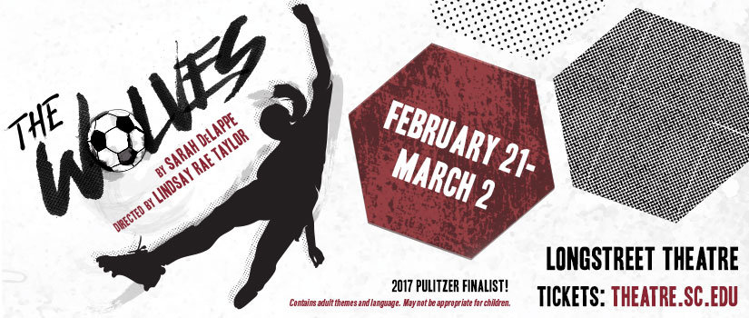 The University of SC Department of Theatre and Dance will present The Wolves, Sarah DeLappe’s Pulitzer-nominated drama about the personal struggles of a girls’ soccer team, February 21 – March 2, 2019 at Longstreet Theatre.