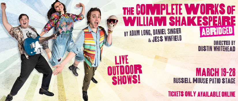 All 37 of Shakespeare’s plays – comedies, histories and tragedies -- get the spotlight in this irreverent, unpredictable comedy by Adam Long, Daniel Singer and Jess Winfield. One of the world’s most produced plays, Complete Works will have Bard lovers and haters alike rolling in the aisles (and maybe rolling their eyes) as every timeless tale is frantically recreated by three madcap thespians in tights in a fast and furious hour-and-a-half! As reviewed by The Miami Herald, Complete Works is “Shakespeare as it was back in the Bard’s day: bawdy, irreverent [and] sublimely entertaining.”