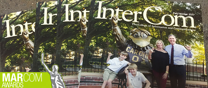 InterCom, the student-produced alumni and donor magazine for the College of Information and Communications, won four gold awards and three honorable mentions in the 2017 MarCom Awards for its two most recent issues.