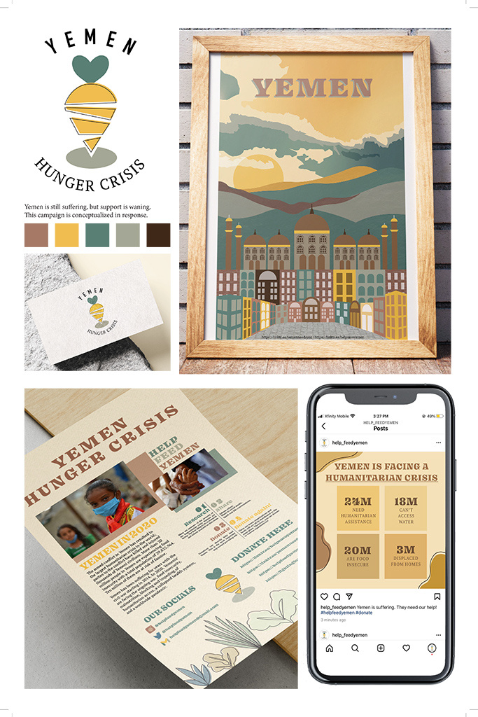 Devin Evola, a vis comm student in Mortensen's class earned a Gold ADDY in the Editorial Spread or Feature Series category for Empower Project. Two other students under Mortensen's tutelage, Katie Valdez and Michelle Ballman were also honored with Silver ADDYs for their Integrated Brand Identity campaigns; Valdez won for Yemen Hunger Crisis Awareness and Ballman for Love Local.