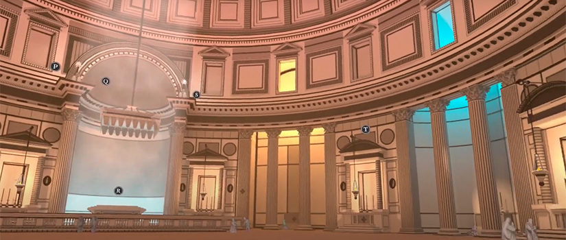 VR re-creation of Piranesi’s Pantheon. Each letter represents an annotation left by Piranesi, close to the same spots that they would have been found in his artwork.