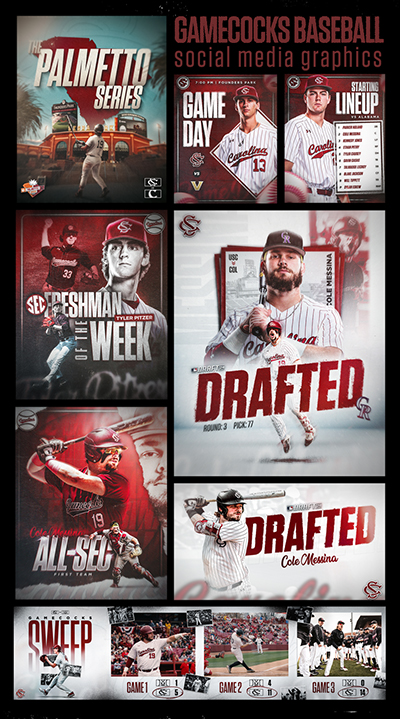 Nick Lott won a Gold award in the General Design category for his Gamecocks Baseball social media graphic. The graphic was also awarded a Gold ADDY from the American Advertising Federation of the Midland's.