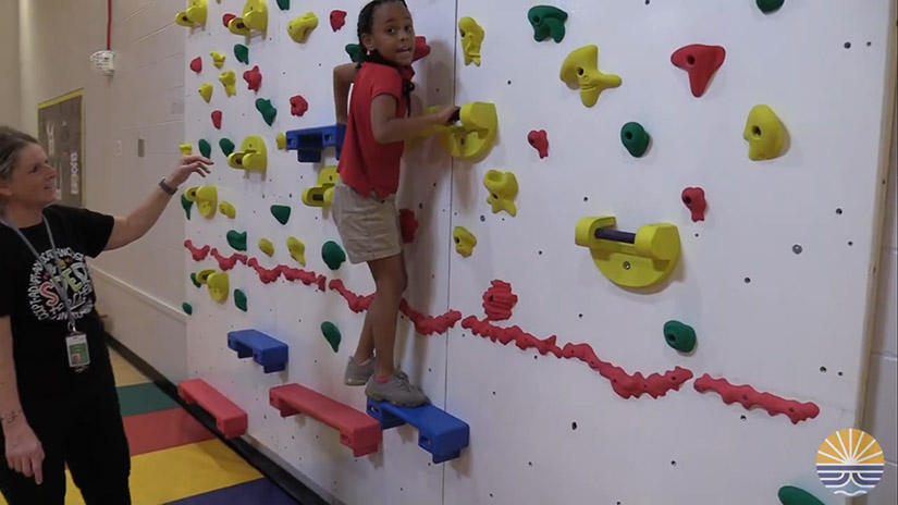 Susan Heid has supported students through physical education for 29 years. You might expect that she’s thinking more about retirement than classroom innovations — but you would be wrong. With the support of her administration, Heid has installed the district’s only adaptive climbing wall in Beaufort Elementary School’s gymnasium.