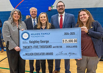 Keighley George (2018, Master of Education in Teaching) grew up in a family of educators. She always knew she would join the profession to make a difference in the lives of others. She wanted her job to be meaningful and purpose driven. Recently, her work was honored when George was presented with the Milken Educator Award, a prestigious national honor hailed as the “Oscar of Teaching,” that recognizes exceptional educators for their dedication to excellence in education and leadership.