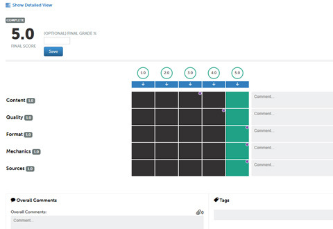 8. From this screen, you can hover over each box to see criteria or choose to “Show Detailed View” to see all of the criteria listed in the rubric.