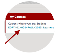 In the My Courses area click the course that contains the assignment you wish to submit.