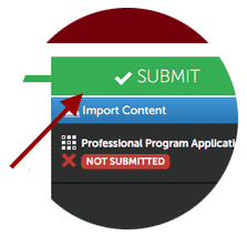 You have now completed the directed teaching application, but you have not submitted the application for review. To do that, scroll to the top of the window and click the green SUBMIT button located in the top right of the |