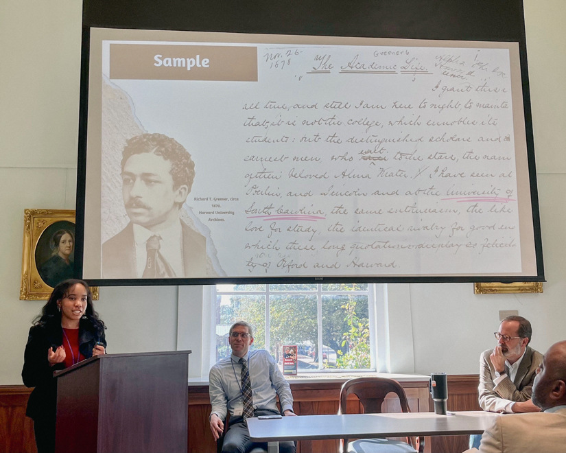 “After class one day, I was like, ‘If you are looking for an undergraduate student assistant, I would love to be that for you.’ And within the next class, he brought me a couple of Greener’s writings, like his written essays to transcribe,” Dixon reflects. “He got me started on my first research project, which connected me to presenting at my first research conference.”