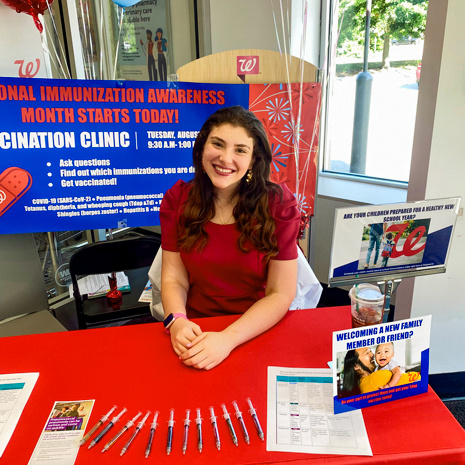 Pictured: Lana Sukkar hosting a vaccination clinic during summer internship with Walgreens.
