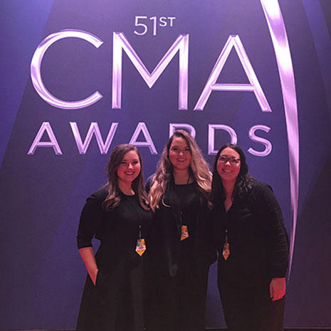 Beth Adams, Emily Galloway, Alexis Jendza and Breanna McGarry earned the chance to work for the Country Music Association at the awards through their roles in CMA EDU (Country Music Association Education), a student organization in the College of Hospitality, Retail and Sport Management.