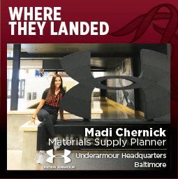 turned her internship with Under Armour into a full-time position! Madi will be a materials supply planner based at the company's global headquarters in Baltimore.