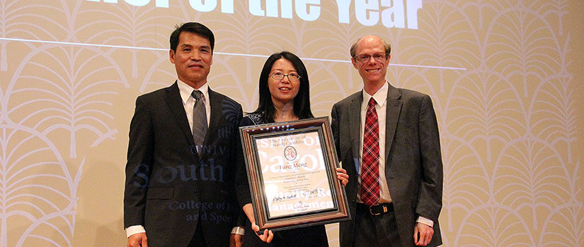 The 2019 Patricia G. Moody Researcher of the Year Award went to Fang Meng, an associate professor in the School of Hotel, Restaurant and Tourism Management and a research associate in the Richardson Family SmartState Center of Economic Excellence in Tourism and Economic Development.