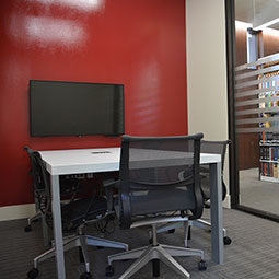 There are 26 group study rooms in the School of Law. Each room features a garnet wall on which students can write with white dry erase markers.