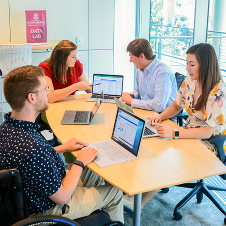 To make them more competitive in the job market, all graduate students are strongly encouraged to learn how to analyze data in functional domains. Ninety-five percent of full-time MBAs and many Professional MBA students in this year’s graduating class completed graduate certificates in business analytics.