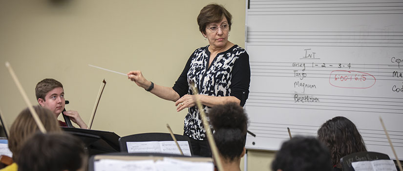 A career educator and violist, Barnes teaches courses in stringed instrument methods, orchestra literature and sociology of music education. She has also conducted all‐state orchestras and presented teaching clinics around the United States. She is co‐author of Measures of Success for String Orchestra, a method book for young musicians, and she founded a forum for string and orchestra teachers on Facebook which has more than 9000 members. Before joining the faculty in Columbia, Dr. Barnes played professionally in the Virginia Symphony and Virginia Opera, and she continues to play viola with the South Carolina Philharmonic.