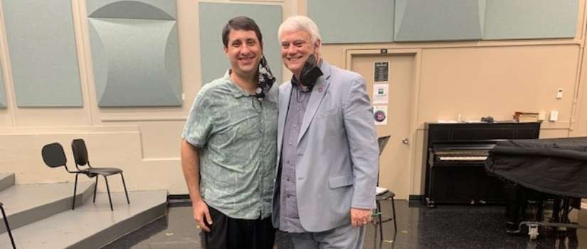 Dean Harding engaged in accreditation review duties at the University of Hawaii, Manoa which gave him the opportunity to watch the rehearsal of the University’s Symphonic Band where alumnus Dr. Adam Kehl, ’14, serves as Marching Band Director. Kehl received his Doctor of Musical Arts from USC and has lived in Hawaii with his wife and child for the past couple of years.