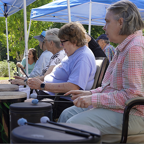 “Events like this drum circle are therapeutic. They are about making social interactions, wellness and joy. For some people, our planned activities are just a reason to get up in the morning,” Rabon explains. “This is important to our residents. It was great to see who came out today.”