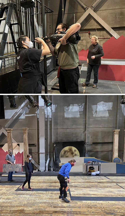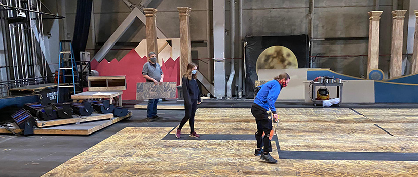 Sure. For instance, all the cast and crew need to go to the warehouse for at least two hours and help with painting. Personally, I painted the floors of our giant platforms using a big roller and the stairs that are going to lead up to the side of the ramps that people enter on. Everyone has helped with something like that. They all are there for load in and load out, bringing sets in and out of the theatre. The cast have their hands on every part of our productions. It’s what makes our shows so memorable. There’s a saying, “There are no small roles, only small actors.”