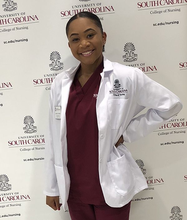 After moving all over the country in a military family, student Shatoria Sandlain has made a home in the College of Nursing at the University of South Carolina. In her time pursuing her undergraduate degree in nursing, Shatoria has balanced schoolwork, friendships, and her sorority, Chi Eta Phi, of which she is now president. When asked how she handles it all, she said, “Stay organized and avoid procrastination. Find a hobby, too.”