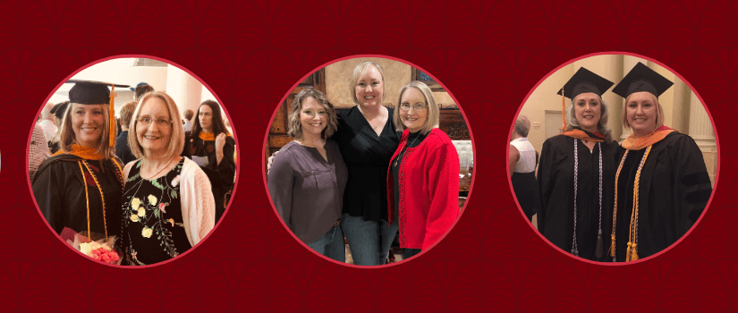 The path to nursing is not always obvious. Shelley Knox (MSN’99, BSN’96) returned to college later in life as a mom, only one year ahead of her daughter Amy Funderburk (BSN’97). Not long after, Shelley’s second daughter Beth-Ann K. Bowers (MSN’22, BSN’13) followed the career to nursing as well.