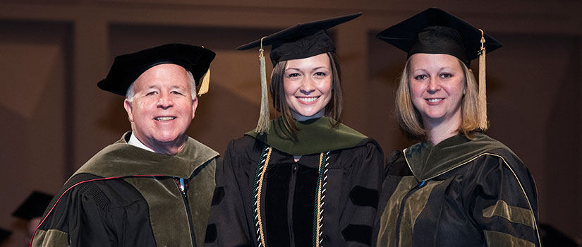 Now at the end of both of her programs [She graduated in May with a PharmD degree (pictured above with Pharmacy's Interim Executive Dean Rowen and Dr. Grant) and will quickly follow that graduation with a second in August for her MPH], Davis will work in North and South Carolina as a community pharmacist with plans to work with the state government or state board of pharmacy to improve public health programs in a variety of areas. She also has some advice to dispense.