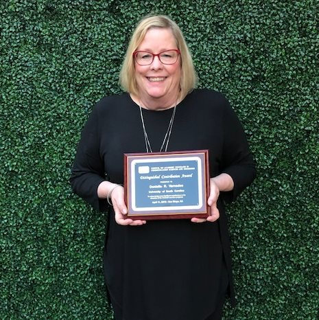 Danielle Varnedoe, communication sciences and disorders (COMD) senior clinical instructor and director of the USC Speech and Hearing Research Center, received the Distinguished Contribution Award from the Council of Academic Programs in Communication Sciences and Disorders (CAPCSD) at the organization’s annual conference earlier this month. This award recognizes significant and/or sustained service or contributions to CAPCSD that enhance the organization’s ability to serve its membership or have enriched the education of COMD.