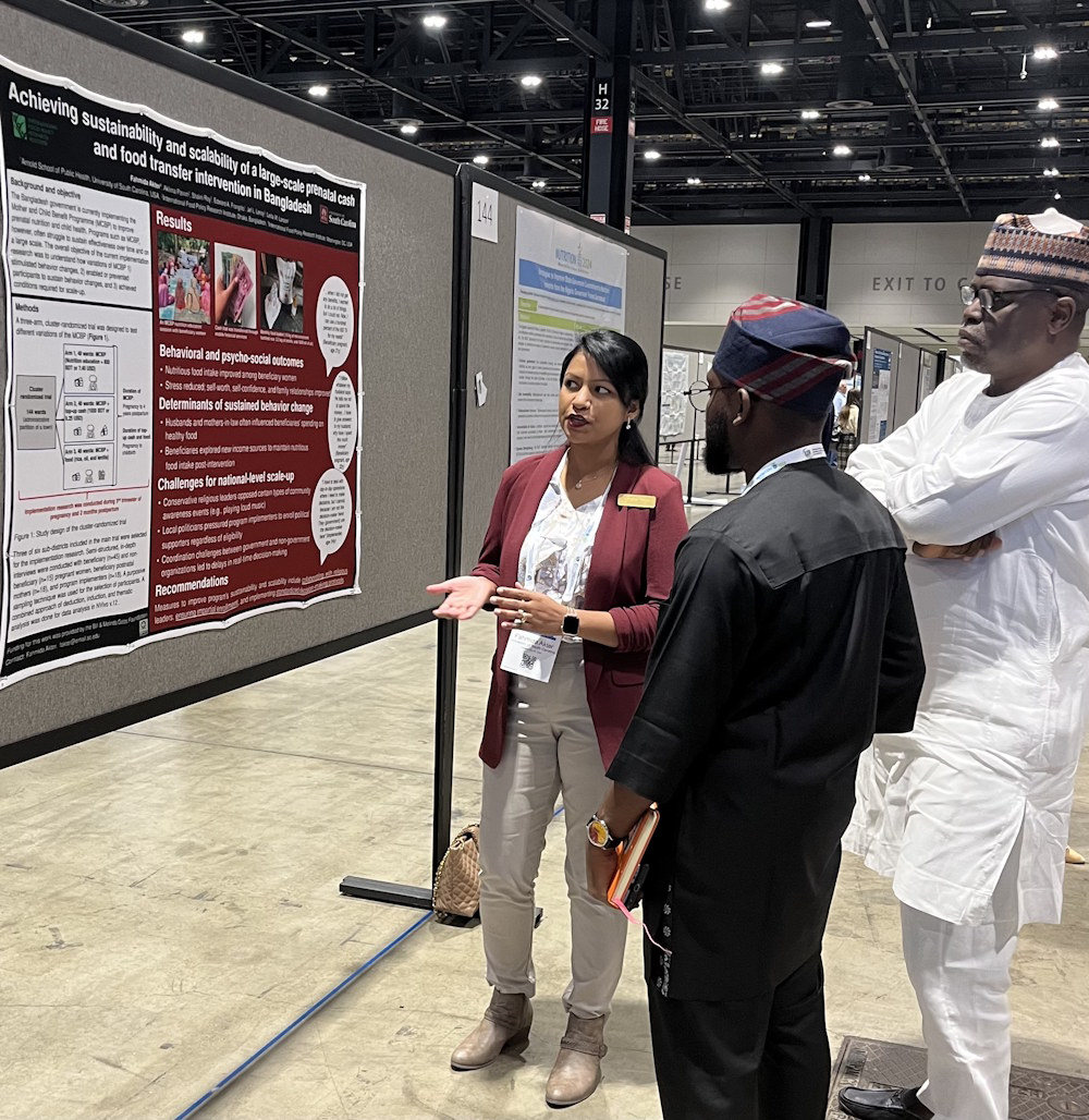 Fahmida Akter (left) presents her research at the American Society for Nutrition's