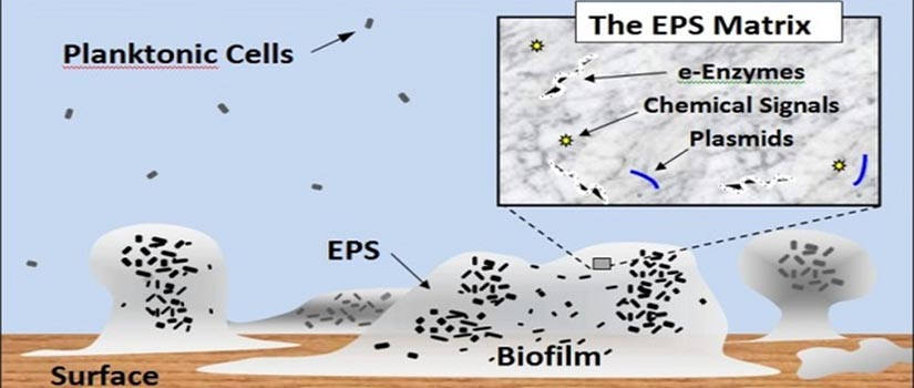 Biofilms occur when bacteria attach to surfaces (or tissues). Protective (EPS) polymers make biofilms resistant to antimicrobials, resulting in multi-billion dollar costs to health and society each year.