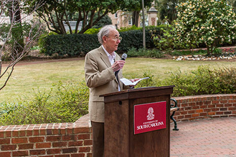 von Lehe, chairman of the University of South Carolina Board of Trustees and a partner of the law firm Nelson Mullins Riley & Scarborough in Charleston, donated the benches to honor the service of his mother, who was director of public welfare for the Department of Social Services in Dorchester County (S.C.) for more than 30 years.
