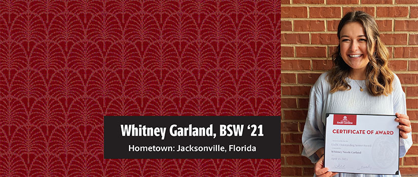 “Being a recipient of the Outstanding Senior Award solidifies that the work that I have put in during my time at South Carolina has not gone unnoticed and made an impact. I think that sometimes social work can be a thankless profession and devoting oneself to a life of serving others can be intimidating. This award only encourages me to continue to empower and advocate for others like I have during my four years here.