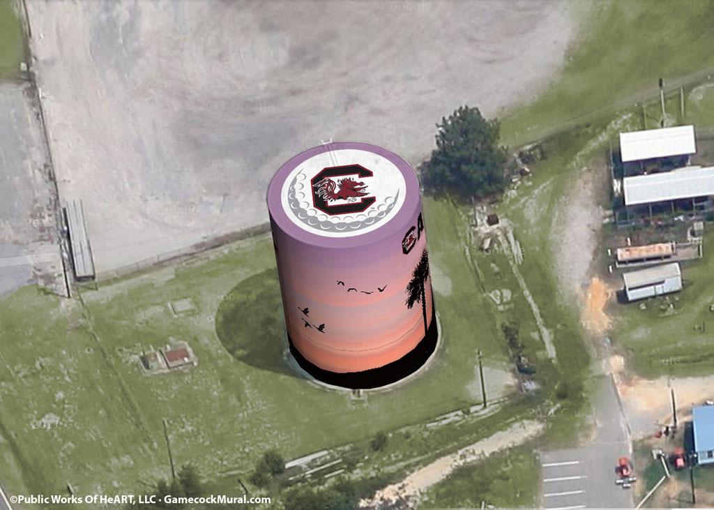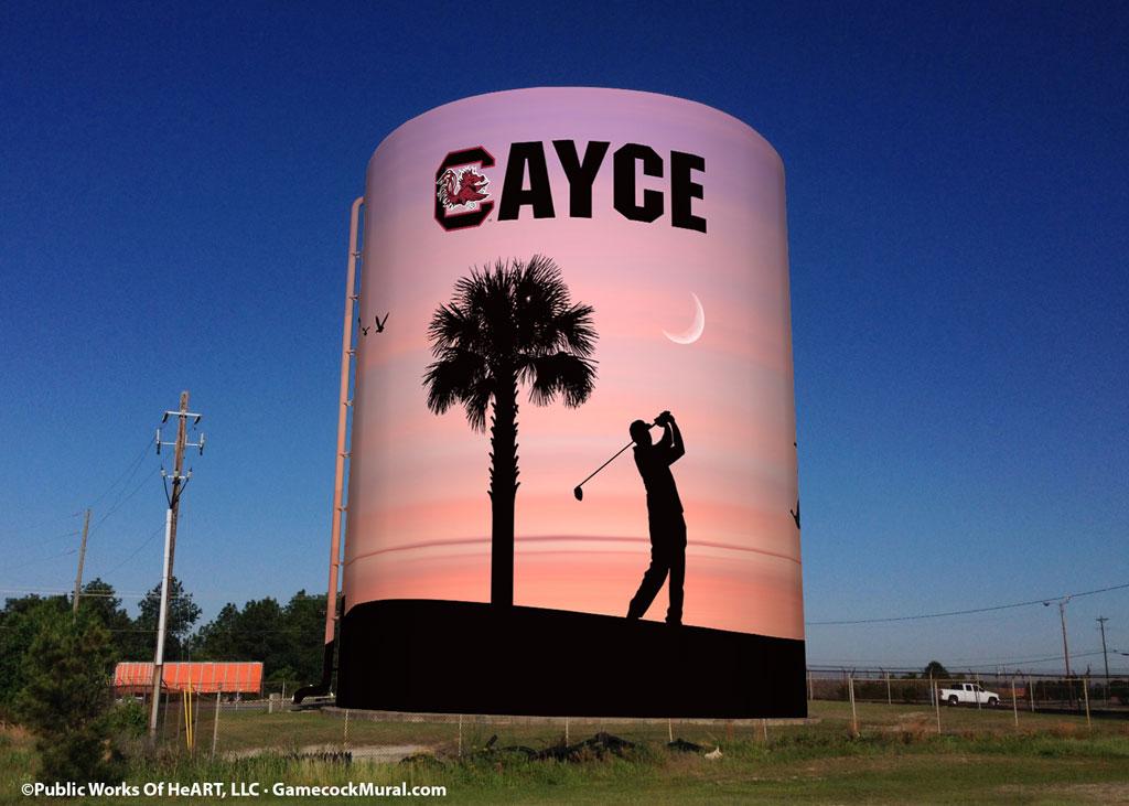 This year, the business, in partnership with the USC Athletics, is raising funds – square by square – to pay for a Gamecock golf mural on the Cayce water tower. The tower, in a highly visible location near Columbia, is next to the practice course for USC’s golf team.
