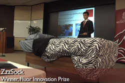 Blethen’s idea to make bedding as easy as pulling up a sock earned him $15,000 in cash and start up support Tuesday (Nov. 19) at The Proving Ground, the University of South Carolina’s entrepreneurial challenge. The bedding fits over a mattress like a sock, which keeps a person covered and bed-making a simple process.