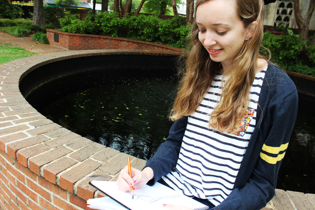 Growing up with a graphic designer mother and an architect dad meant Muldrow, a junior studio art major, never had a shortage of art supplies. These days, though, she’s using more digital skills to create her works.