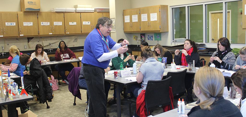 Just before the holiday break, 20 students in Donovan’s “Teaching Science in Elementary School” class each built and launched an “Alpha” rocket, which flew to about 1,200 feet, Donovan says. As in the dozens of teacher workshops and countless classes he’s taught, model rockets were a big hit.