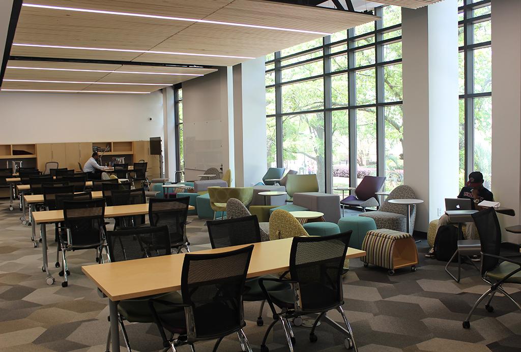 “It’s not just about us putting together programs anymore — not that they’re going away. It’s about students engaging,” Wuest says. “It’s a huge campus with 30,000 students, and here we have a space where they can come in, sit down and feel comfortable. They can plug in and get creative, push some tables together and collaborate, attend a drop-in program like TED Talk Tuesdays, interact with local leaders through Leaders In Residence — and hopefully come in with ideas of their own.