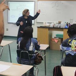 Outside the research laboratory, Linda Shimizu oversees UofSC students who put on chemistry shows at local schools.