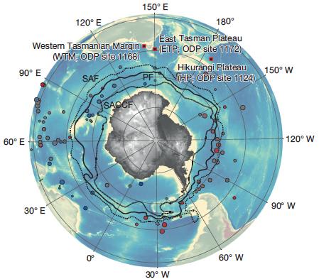 By measuring neodymium isotope compositions incorporated into fish teeth fossils in core samples, the team was able to establish that eastward current flow between the Pacific and Indian Oceans didn’t begin until about 30 million years ago, some 2 to 5 million years after the Tasmanian gateway opened.