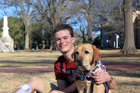 “I have autism, and the classic hallmark of autism is that social interaction is difficult,” Fleming says, crediting his service dog, Daisy, with helping him engage with others. “One thing that I’ve surprised myself with is that before I came to USC, I would have never thought that I could do something like Cocky’s Reading Express. That whole concept had been foreign to me. As a result, it’s been important for me to grow in that way and to overcome that challenge. Without Daisy, I would have never been able to overcome that step or try something that’s not in my comfort zone.”