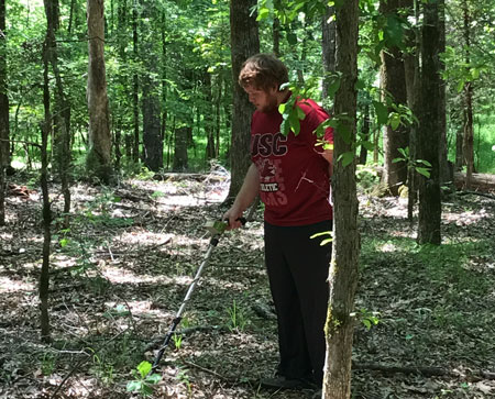 Monzel was one of five University of South Carolina students who joined archaeology professor Steven D. Smith, the director of the South Carolina Institute of Archaeology and Anthropology, at a field school last month at the Ninety Six National Historic Site. The students searched for historic remnants of a trading post established by 18th century entrepreneur Robert Gouedy in the 1750s. The post was later fortified by the Americans in 1759, expanded in 1761, and was twice attacked by Cherokee Indians.