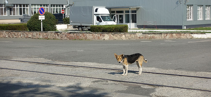 More than 250 stray dogs roam the area around the Chernobyl power plant, and hundreds more live in Chernobyl City and travel throughout the exclusion zone — an 18-mile radius around the plant.
